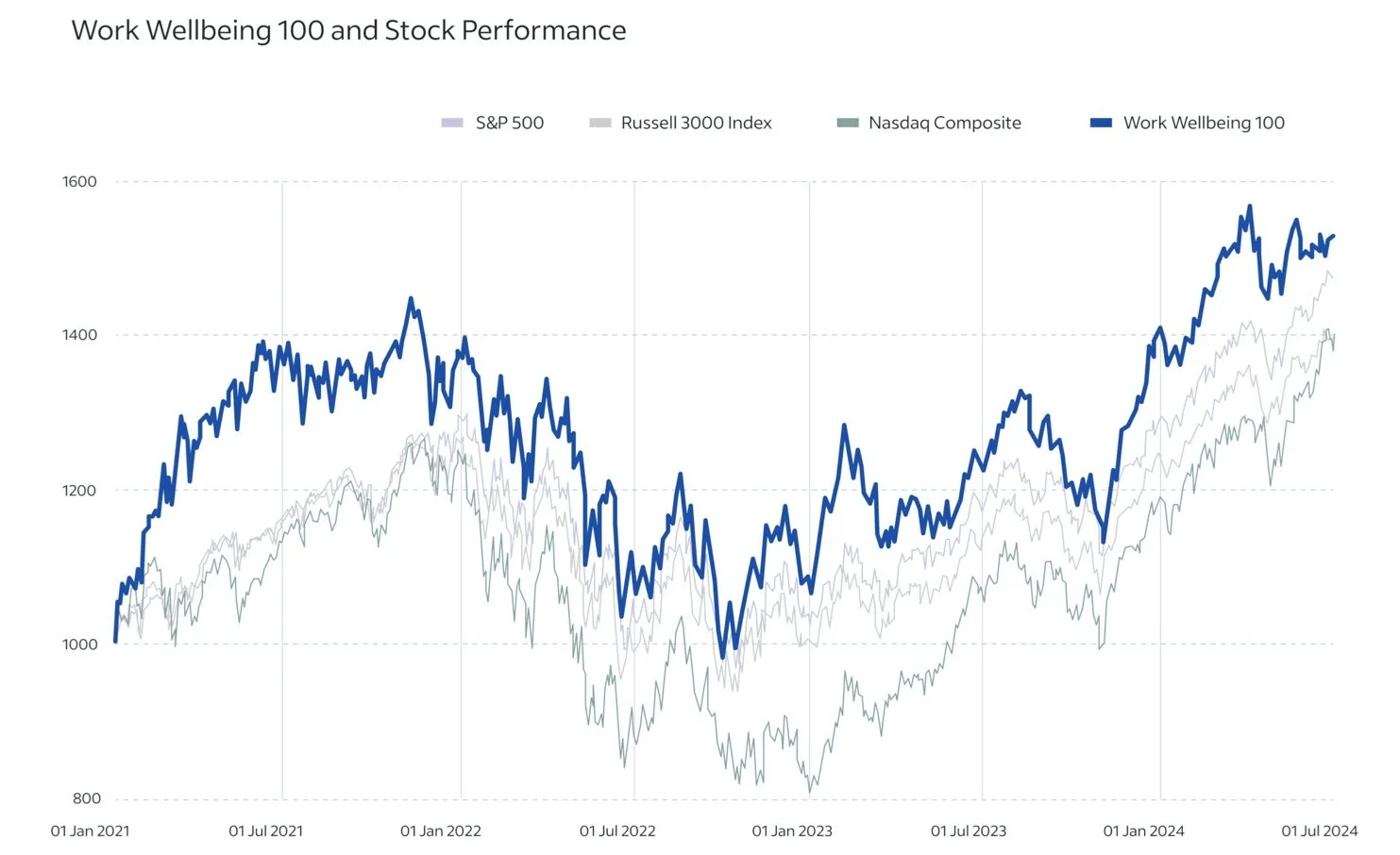 Employee wellbeing reflects an organisation’s internal health; Indeed and Oxford research found companies with high wellbeing greatly outperformed the S&P 500.